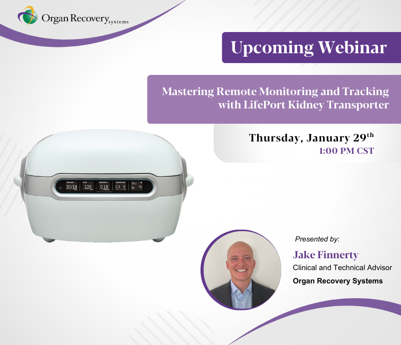 Join us for an interactive webinar designed to help OPO and transplant center teams learn how LifePort Kidney Transporter (LKT) can streamline logistics and eliminate the need to track down pumps.
